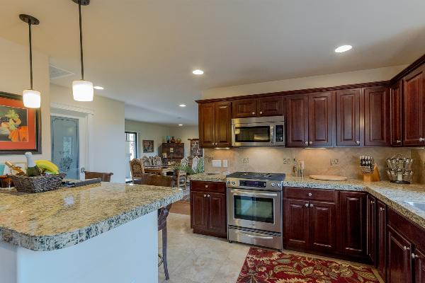 The open concept floor plan makes the living area spacious and enjoyable whether for a couple’s retreat, a small group, or family gathering. Entertain at home in our well-appointed gourmet kitchen, enjoy the views, and the Arizona weather on the beautifully landscaped backyard, complete with bocce ball court, fire pit, and water feature.